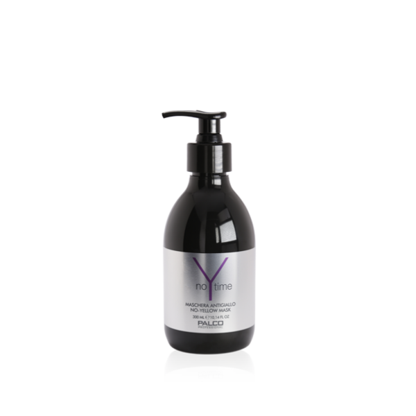 NO Y TIME – ANTI-YELLOW MASK for grey, bleached and streaked hair. Neutralizes undesired yellow reflections, leaving the hair soft and glossy. Use: after the anti-yellow Shampoo, put on suitable gloves and apply to towel-dried hair. Leave on for 3 – 5 minutes and rinse thoroughly. Does not stain the scalp. For professional use.